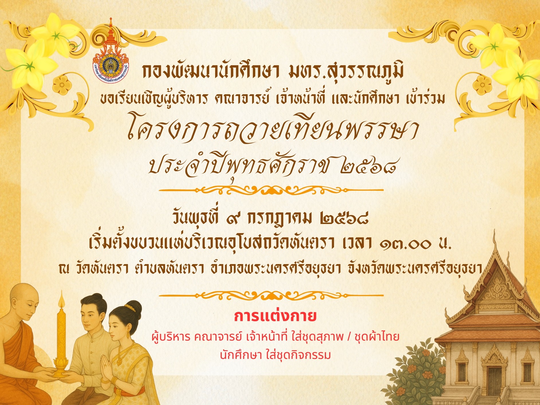 ราชมงคลสุวรรณภูมิ “ถวายเทียนพรรษา” สืบสานและอนุรักษ์วัฒนธรรมไทย