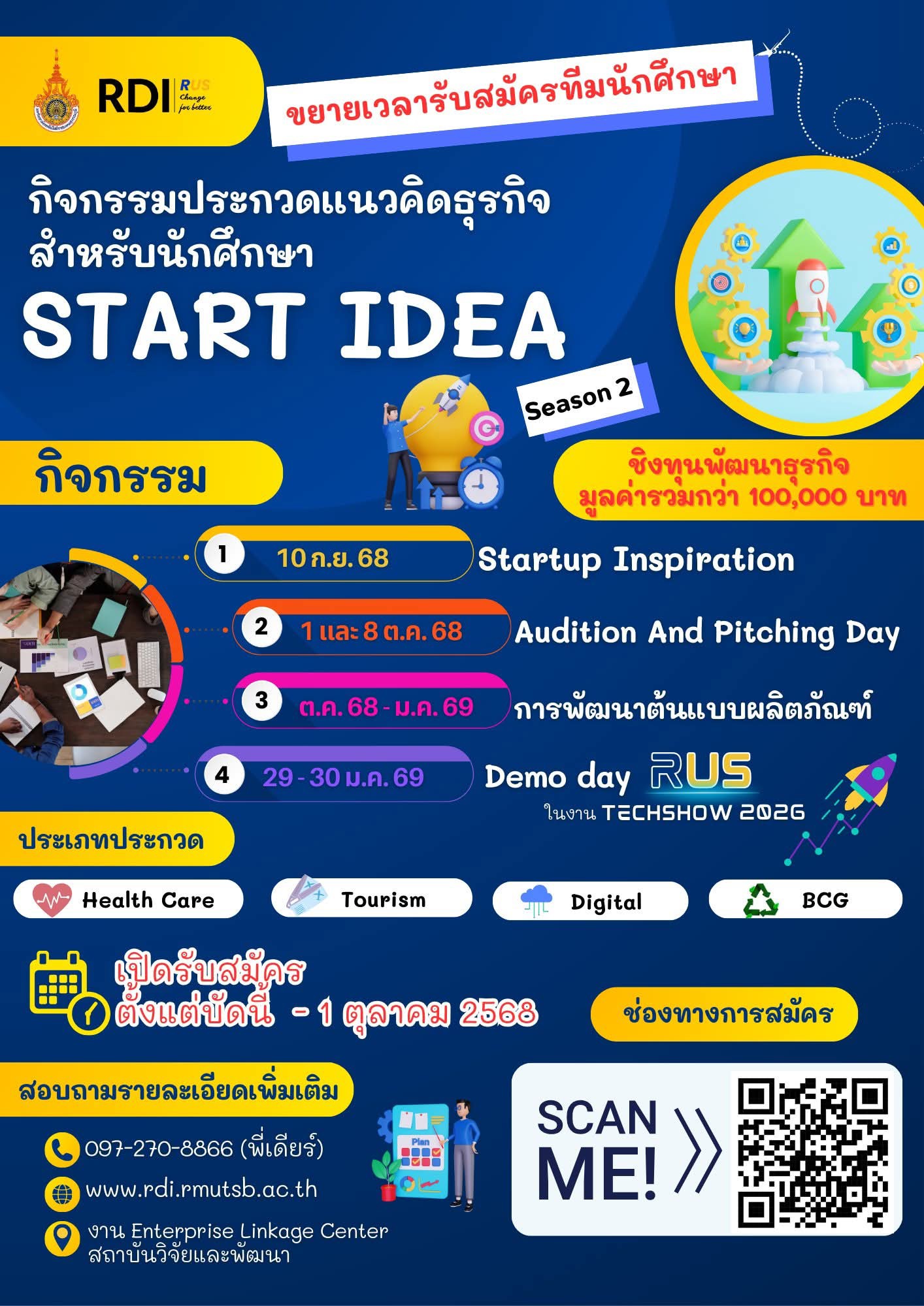 ขยายเวลารับสมัครทีมนักศึกษา !! 🚀 START IDEA Season 2 🚀