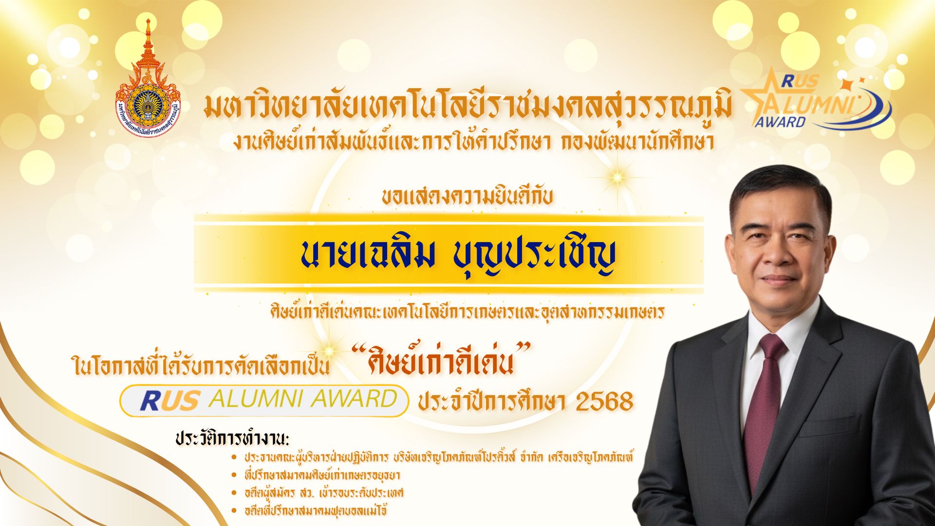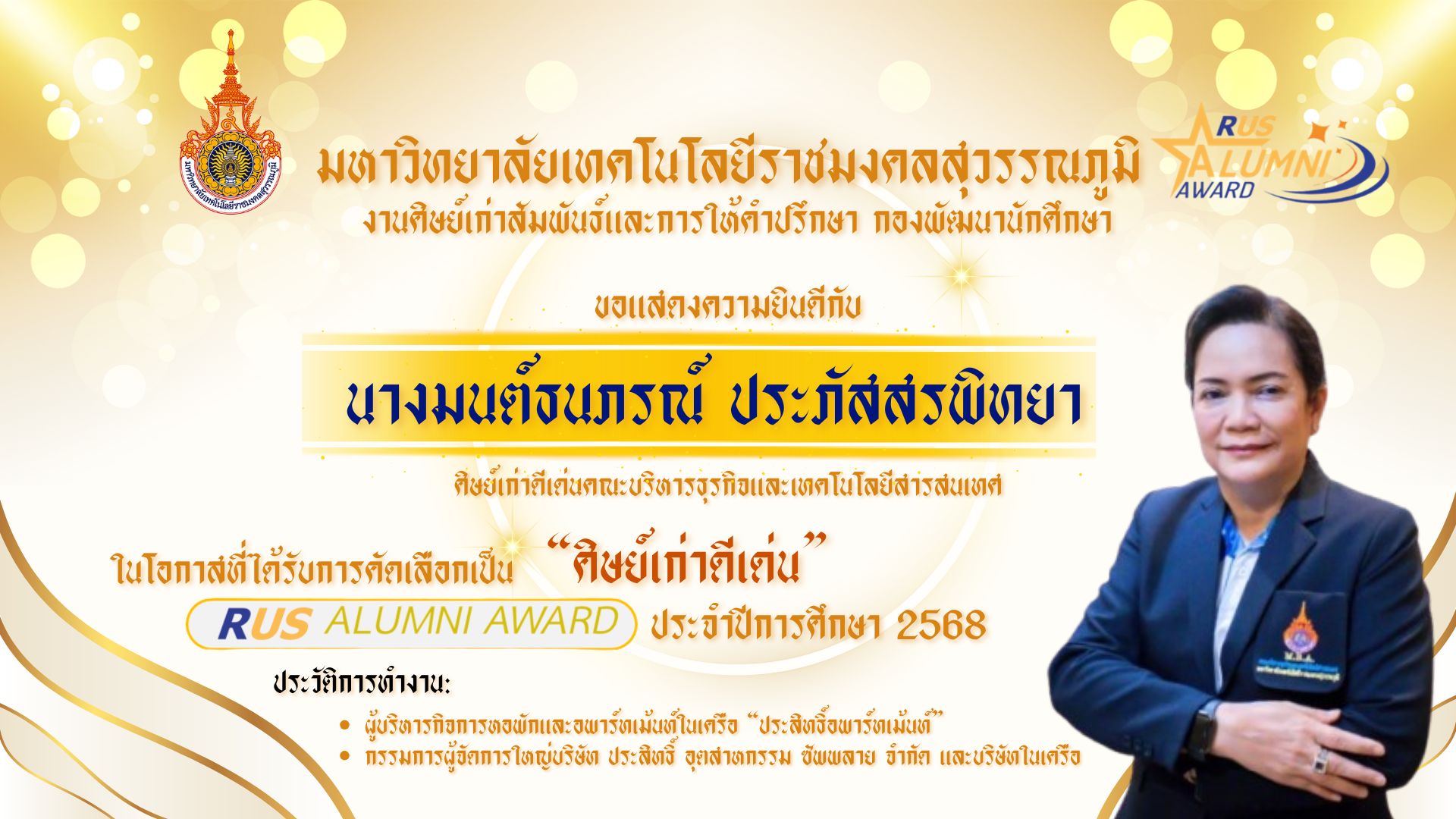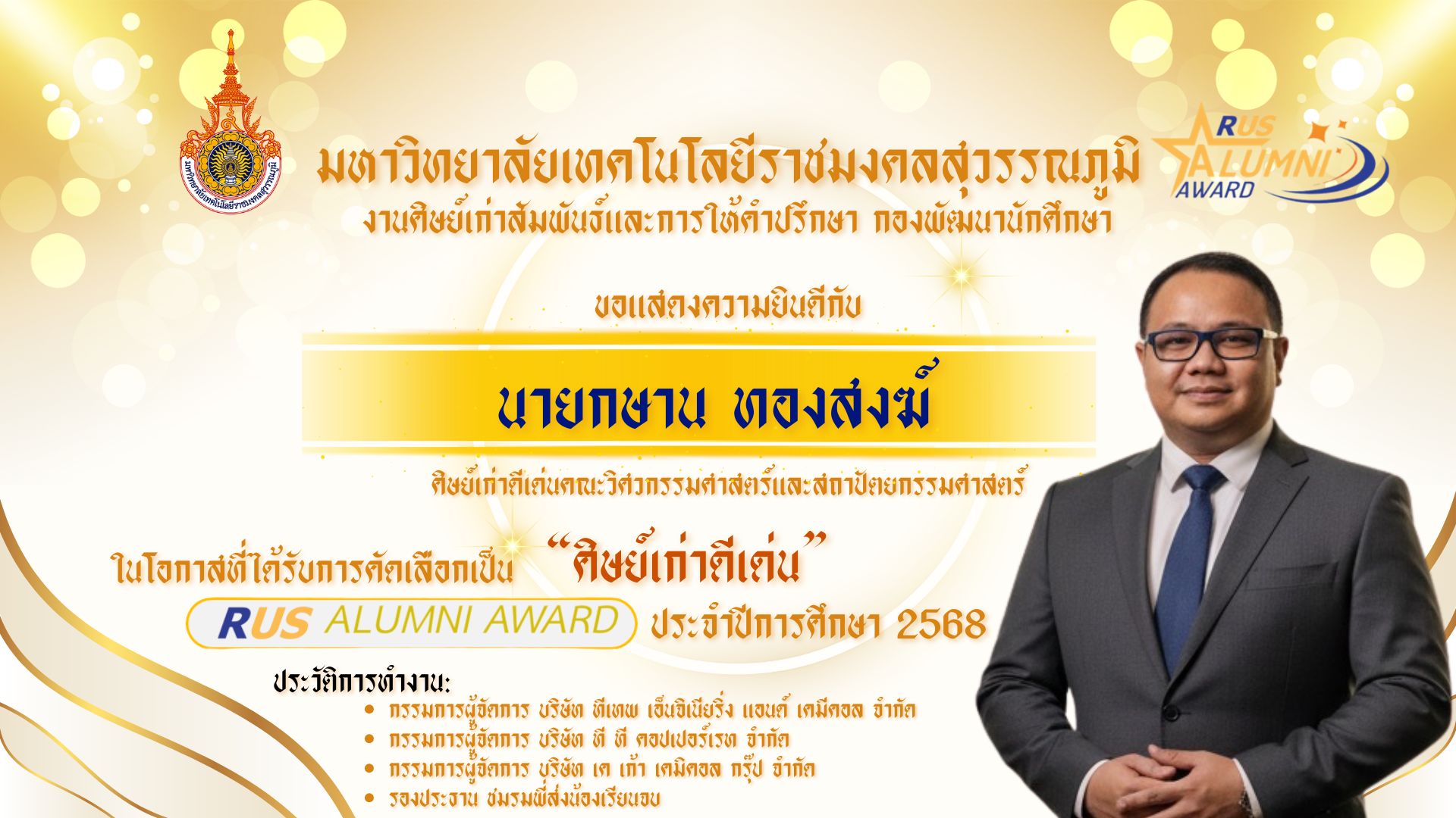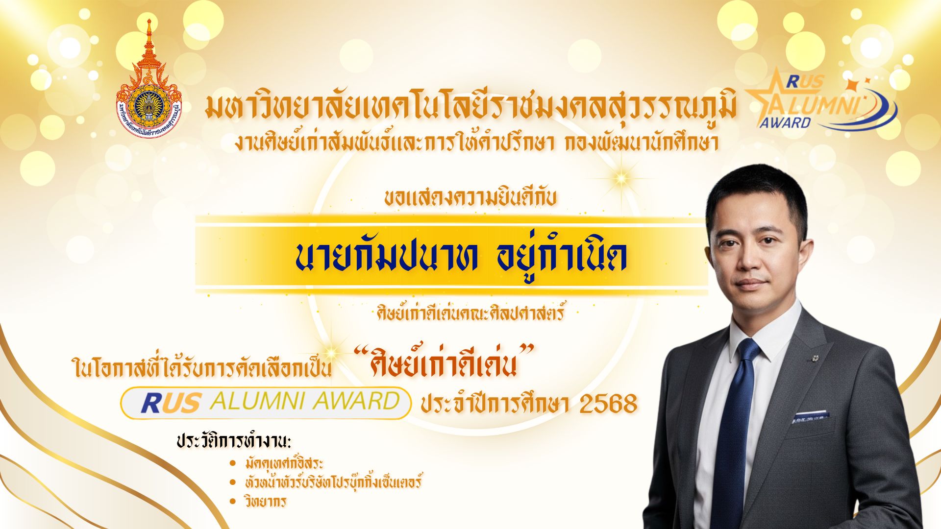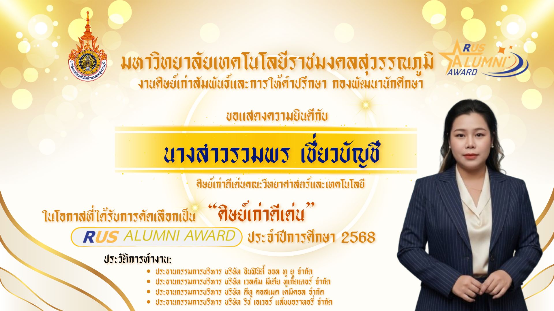 ขอแสดงความยินดีกับ "ศิษย์เก่าดีเด่น" รางวัล RUS ALUMNI AWARD ประจำปีการศึกษา 2568