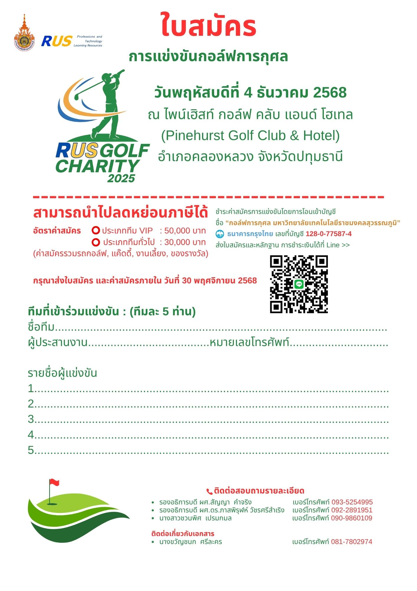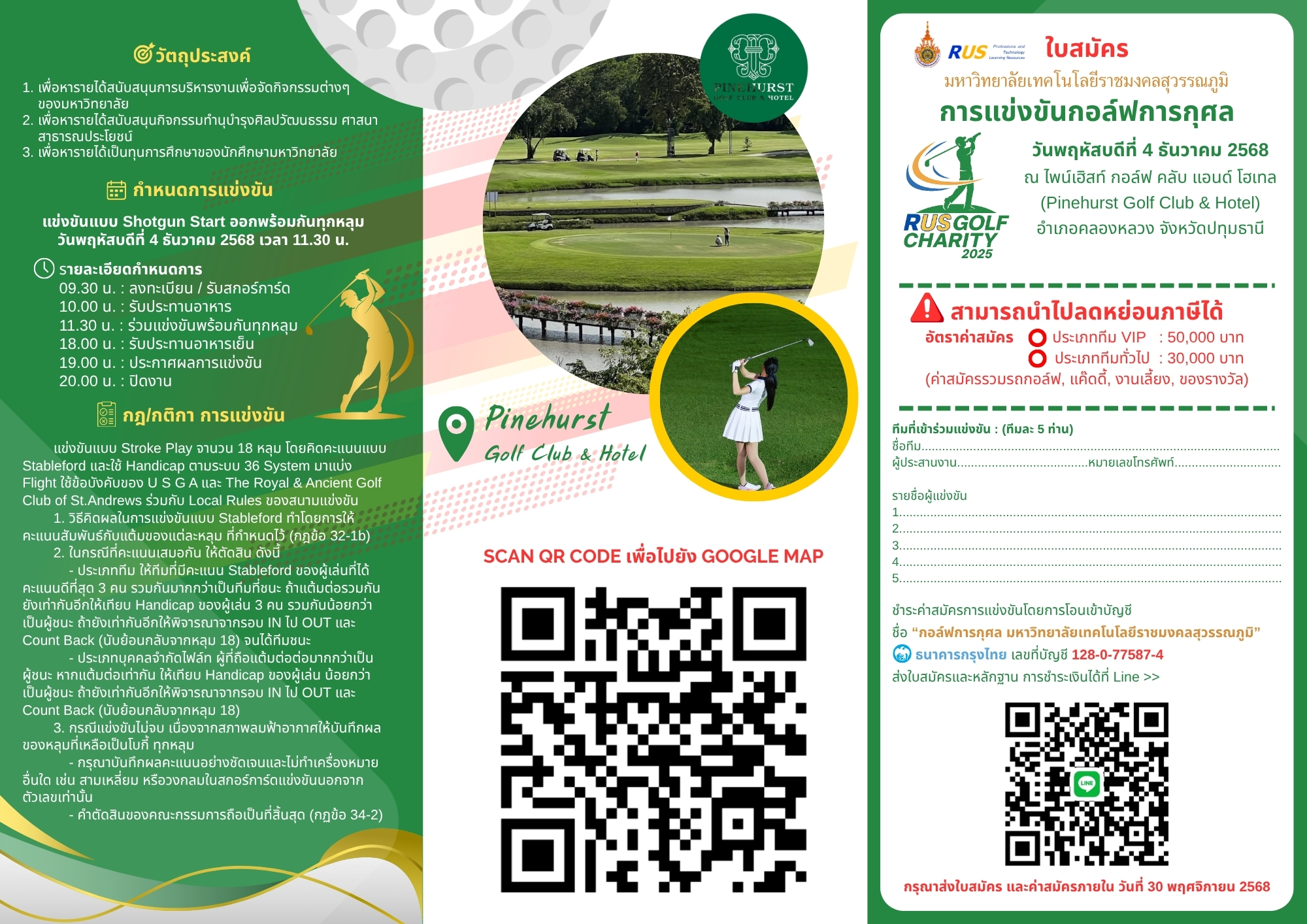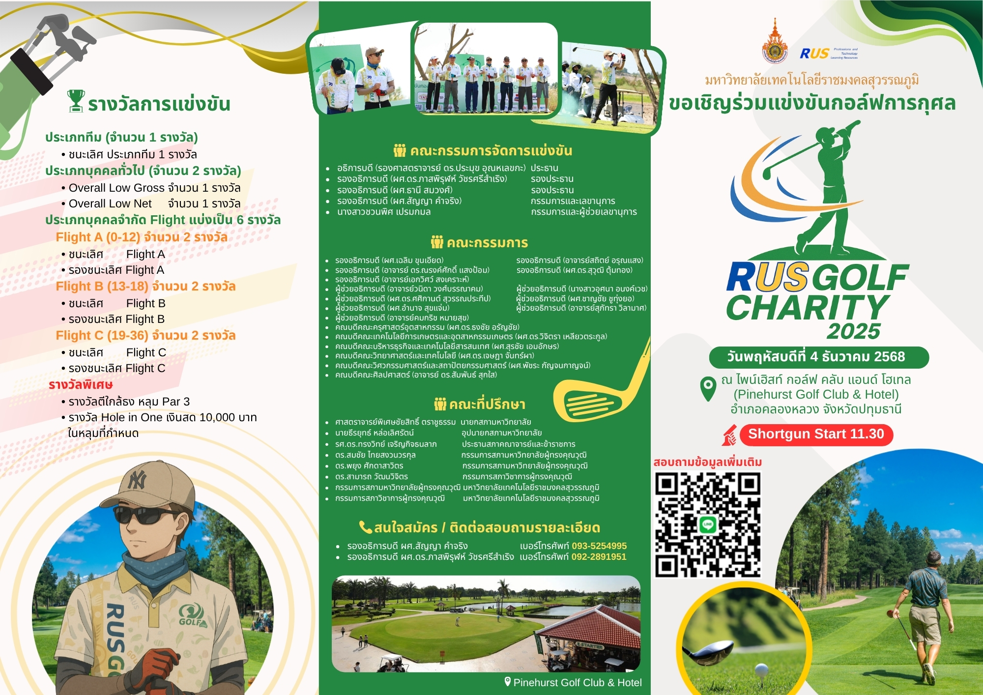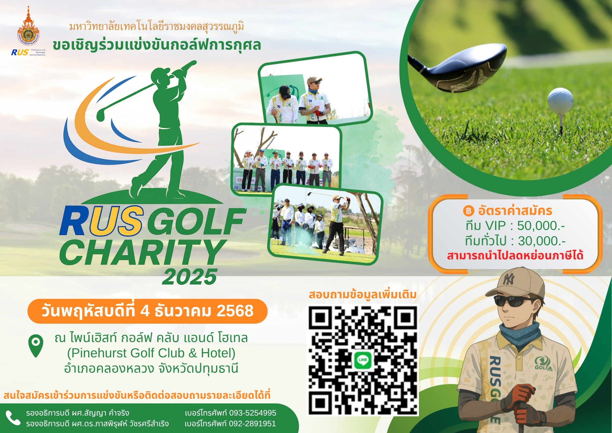 Tag : #rus #rmutsb #กองพัฒนานักศึกษา #มทร.สุวรรณภูมิ #ขอเชิญร่วมแข่งขันกอล์ฟการกุศล RUS GOLF CHARITY 2025