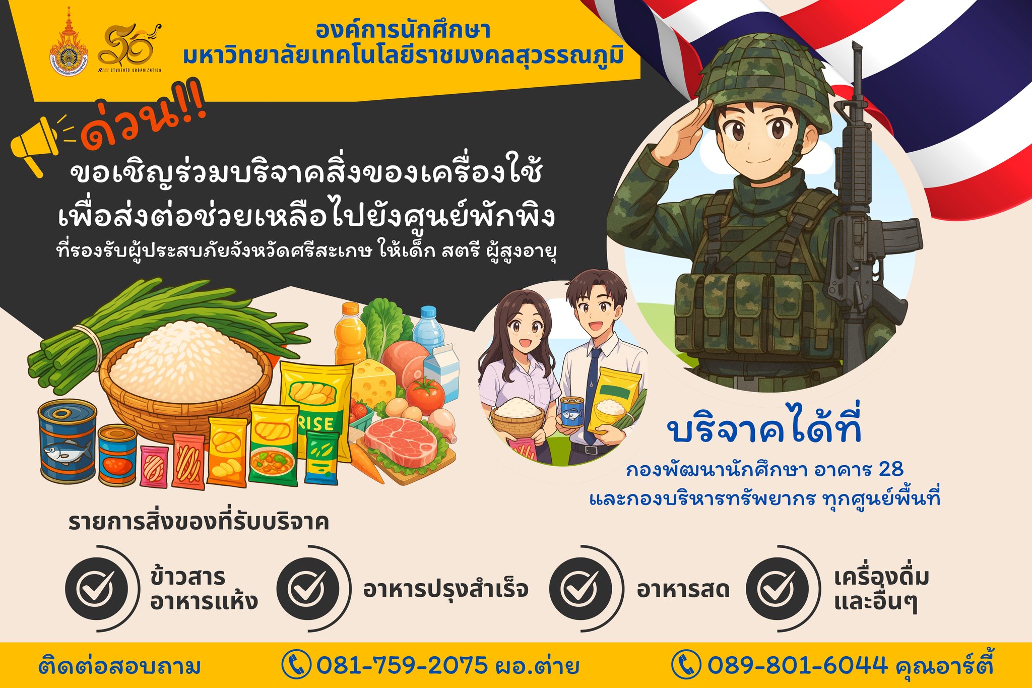 Tag : #rus #rmutsb #กองพัฒนานักศึกษา #มทร.สุวรรณภูมิ #ขอเชิญร่วมบริจาคสิ่งของเครื่องใช้ เพื่อส่งต่อช่วยเหลือไปยังศูนย์พักพิง ที่รองรับผู้ประสบภัยจังหวัดศรีสะเกษ