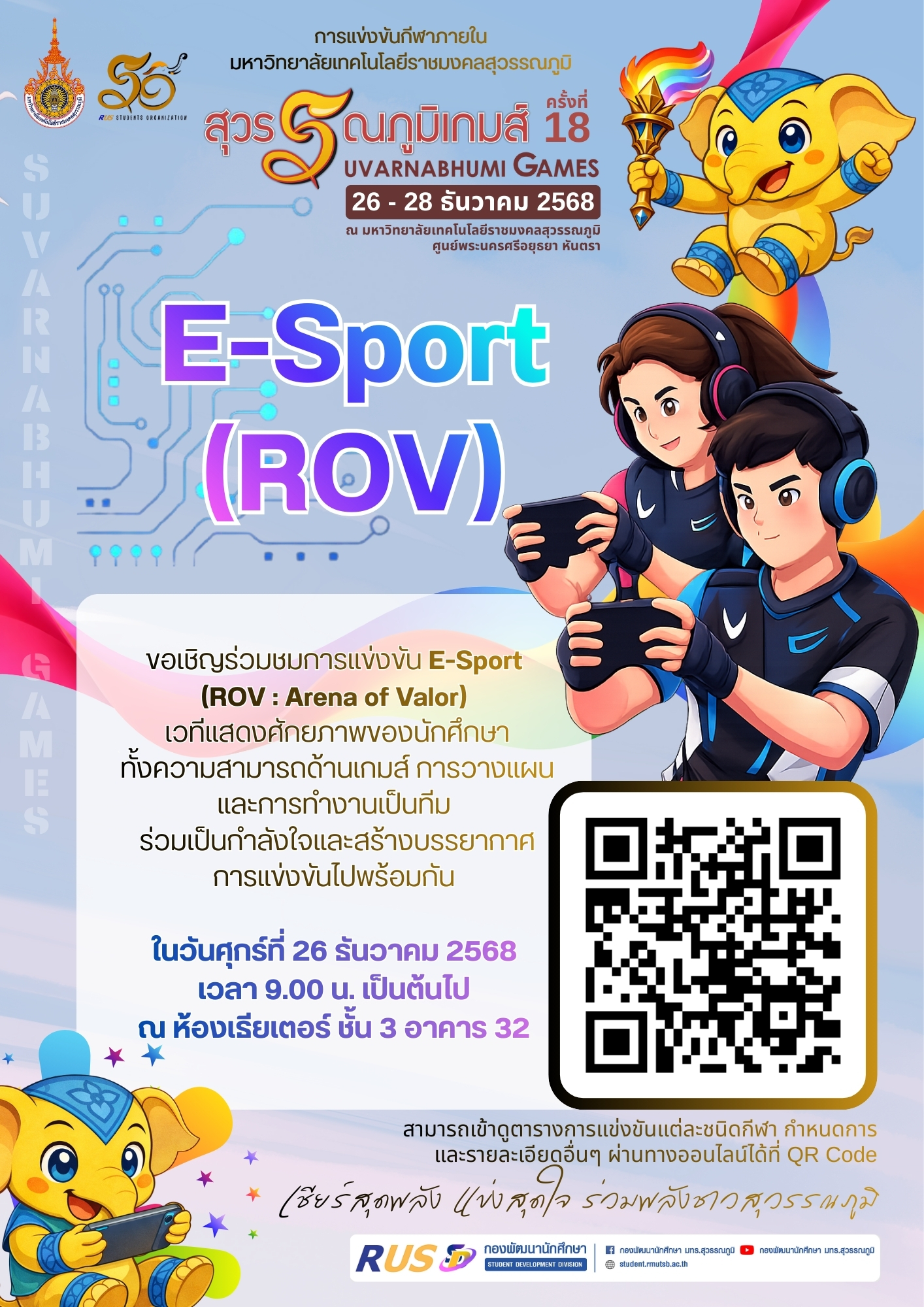 Tag : #rus #rmutsb #กองพัฒนานักศึกษา #มทร.สุวรรณภูมิ #ขอเชิญร่วมชมการแข่งขัน E-Sport (ROV : Arena of Valor)