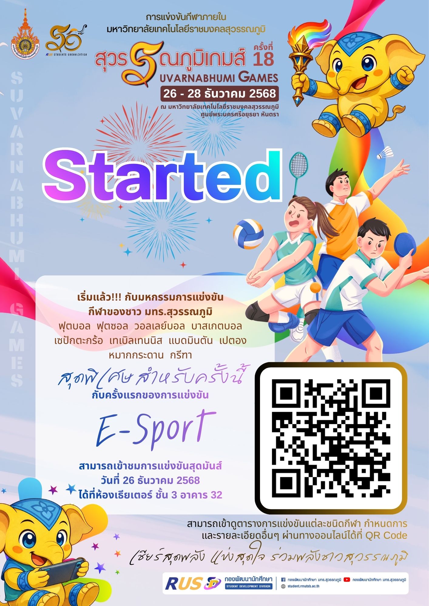 เริ่มแล้ว!!! กับมหกรรมการแข่งขันกีฬาภายใน มหาวิทยาลัยเทคโนโลยีราชมงคลสุวรรณภูมิ "สุวรรณภูมิเกมส์" ครั้งที่ 18