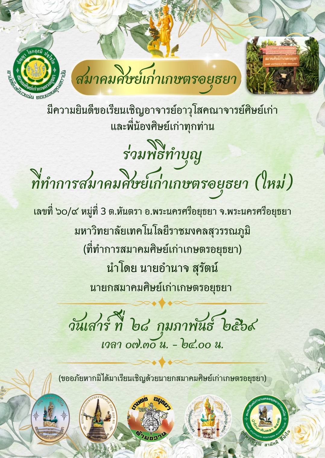 เรียนเชิญชาวเกษตรอยุธยา กำหนดงานขึ้นบ้านใหม่ สำนักงานสมาคมศิษย์เก่าเกษตรอยุธยา