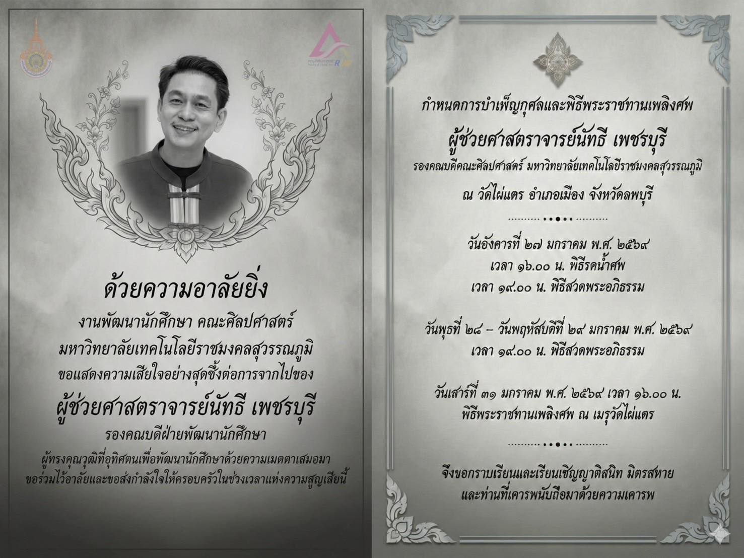 ขอแสดงความเสียใจอย่างสุดซึ้ง ต่อการจากไปของ ผู้ช่วยศาสตราจารย์นัทธี เพชรบุรี