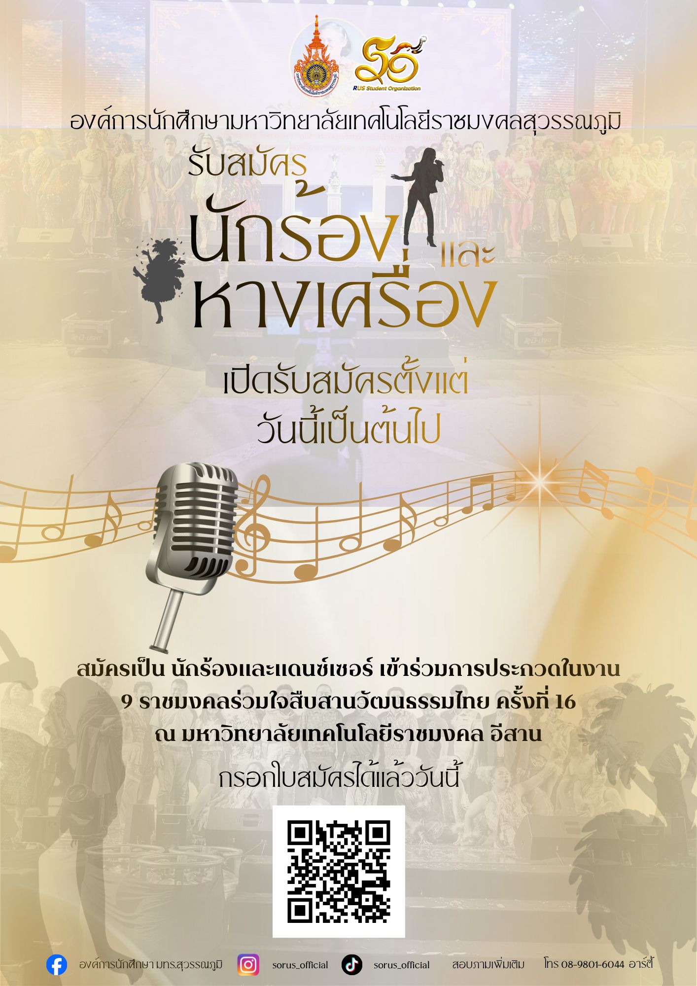 Tag : #rus #rmutsb #กองพัฒนานักศึกษา #มทร.สุวรรณภูมิ #สมัครเป็น นักร้องและแดนซ์เซอร์ เข้าร่วมการประกวดในงาน 9 ราชมงคลร่วมใจสืบสานวัฒนธรรมไทย ครั้งที่ 16