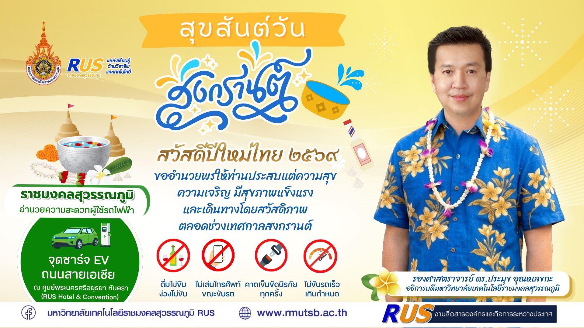 #สงกรานต์2569 #ปีใหม่ไทย #เดินทางปลอดภัย #ดื่มไม่ขับ #EV #จุดชาร์จEV #ราชมงคลสุวรรณภูมิ #RUS