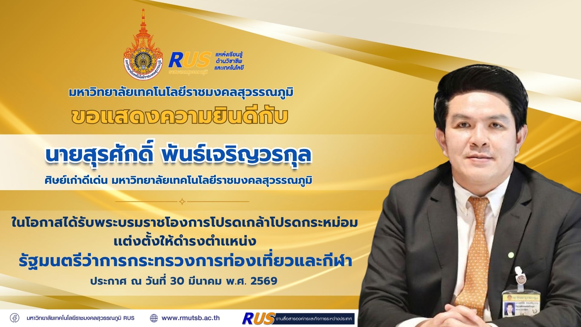ขอแสดงความยินดีกับ นายสุรศักดิ์ พันธ์เจริญวรกุล ศิษย์เก่าดีเด่น มหาวิทยาลัยเทคโนโลยีราชมงคลสุวรรณภูมิ