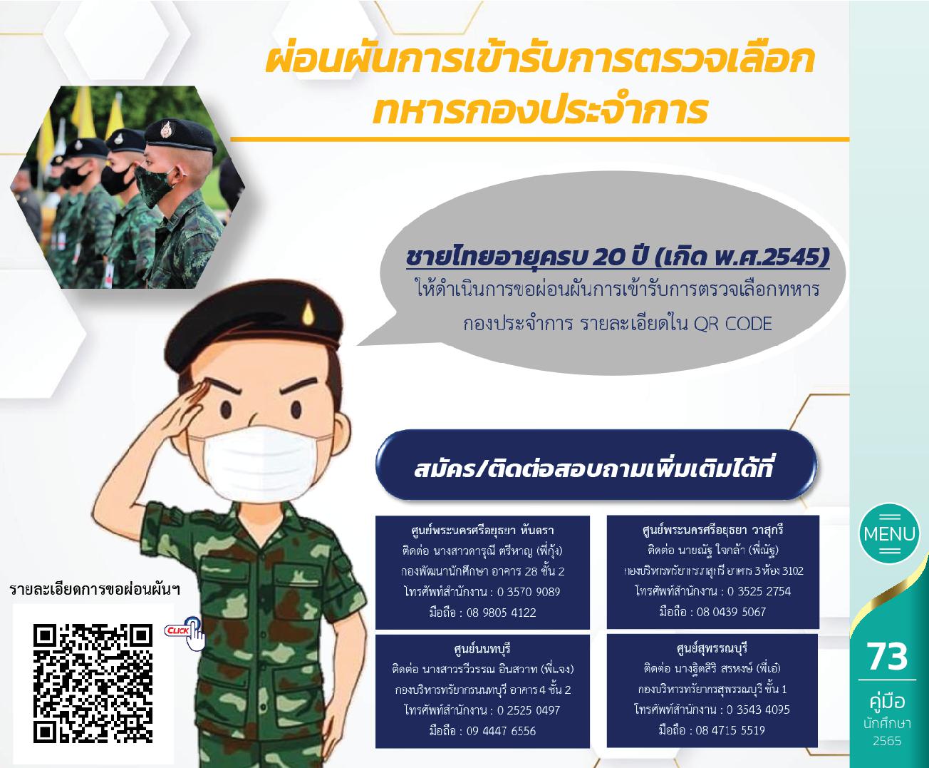 Tag : #ผ่อนผันทหาร #rus #rmutsb #กองพัฒนานักศึกษา #มทร.สุวรรณภูมิ