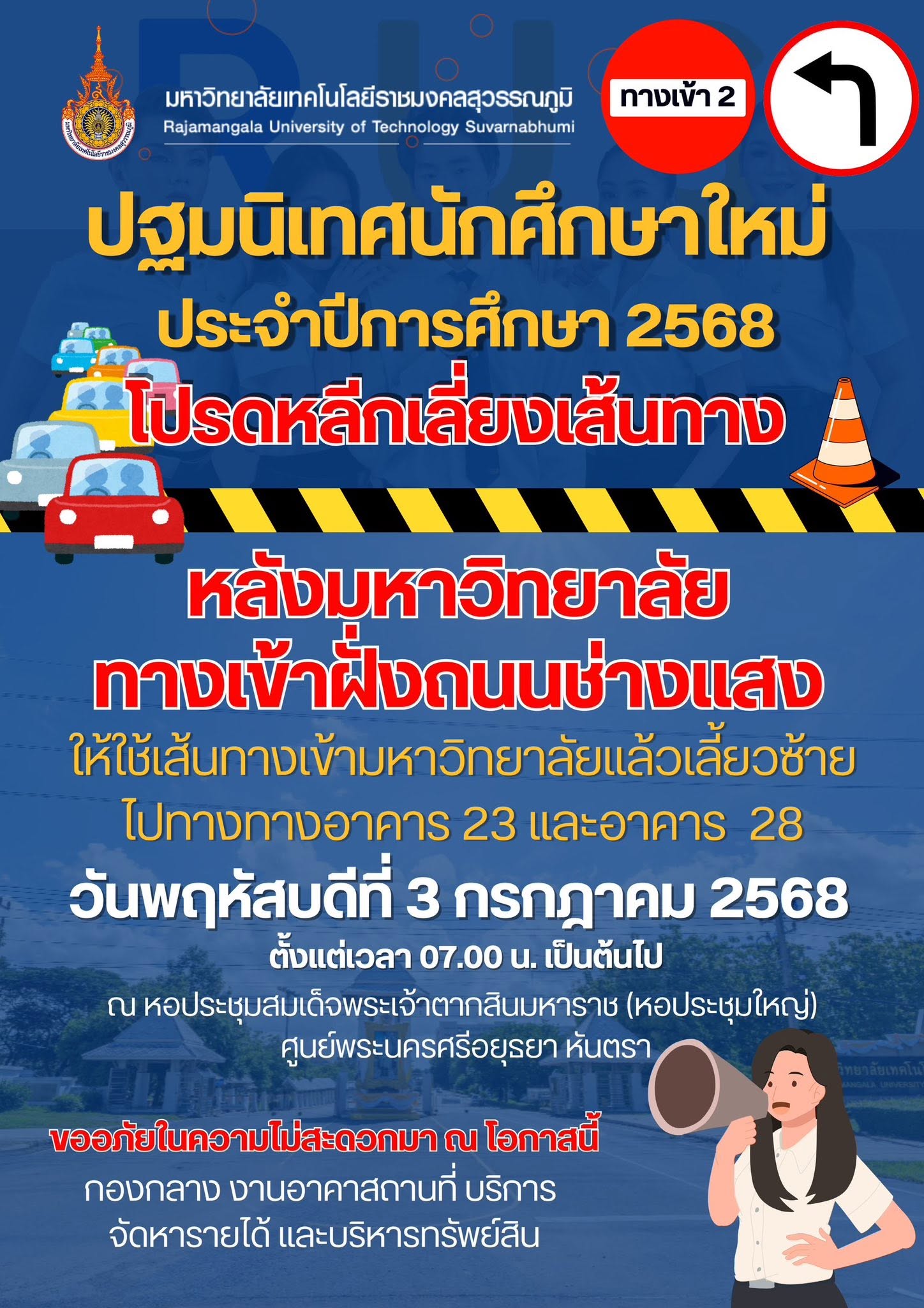 โปรดหลีกเลี่ยงเส้นทาง ปฐมนิเทศนักศึกษา 2568